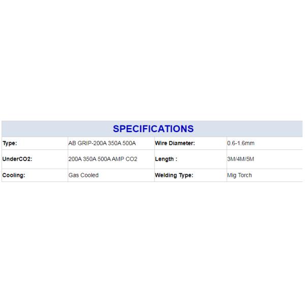 AB Grip Mig Welding Torch Spare Parts 500A Gas Cooled 1.6mm Wire Diameter Images |